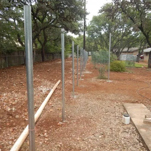 The challenge on this project was the rocky soil. Digging was quite difficult and laborious as we had to place the poles at a minimum of 24" to ensure stability. Luckily we had use of a jack hammer at times. In the end, all 52 posts got into the ground.