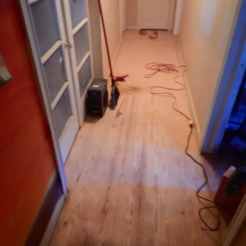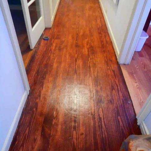 Because we had revealed the good wood underneath the paint on the cabinets, she wanted to know if we could restore the luster of the hallway floors.